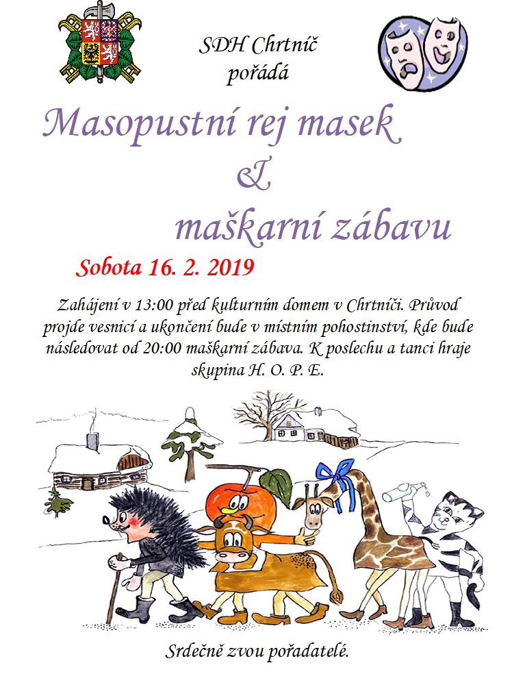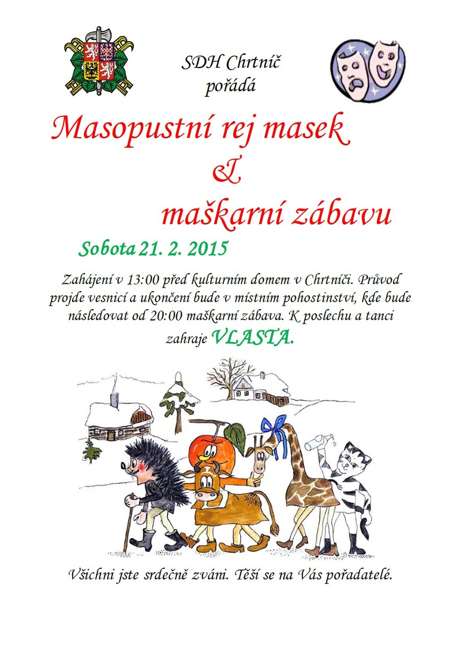 Sbor dobrovolných hasičů si Vás dovoluje pozvat na maškarní průvod dne 2. bčezna 2013 od 13 hod. Večer bude pokračovat maškarní zábava. Tímto Vás srdečně zvou pořadatelé.