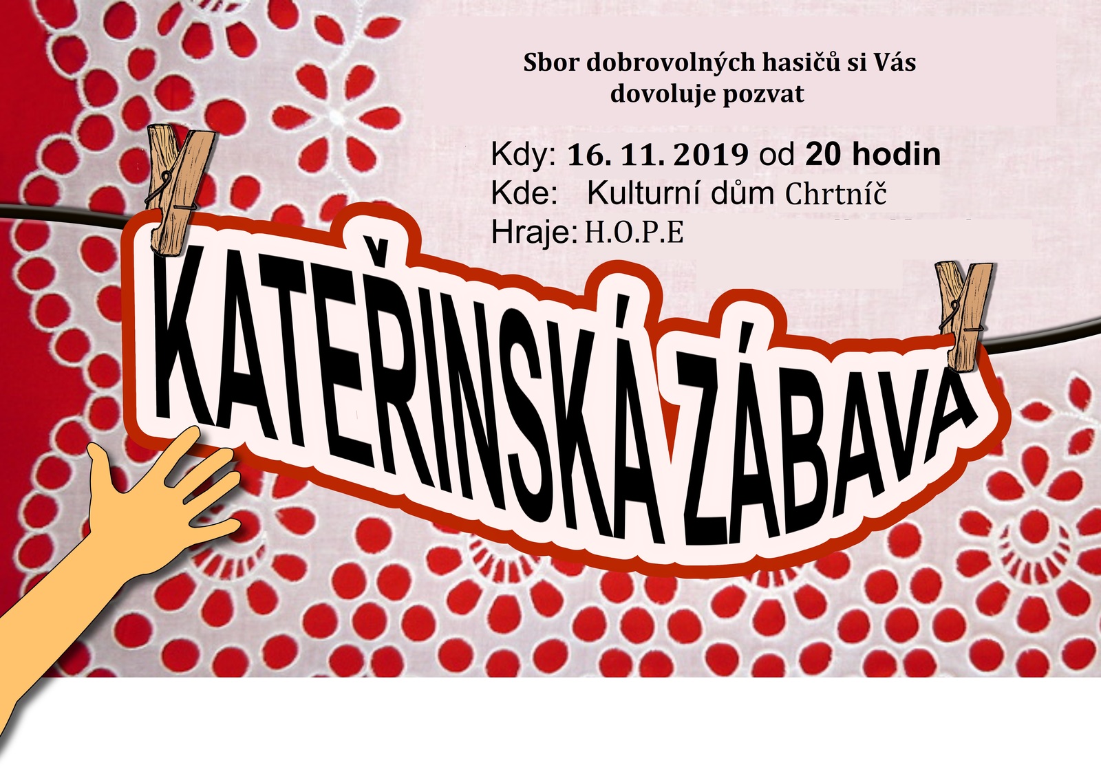 Dne 16. 11. uspořádal náš sbor tradiční Kateřinskou zábavu, kde k poslechu a tanci hrála skupina H.O.P.E. Účast byla docela dobrá a věříme, že se všem zábava líbila a budou se těšit na náš tradiční Hasičský ples 29.2. 2020.