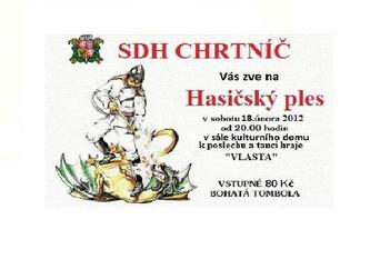 Dne 18. 2. 2012 jsme se sešli na hasičském plese, který jsme pro Vás po delší době uspořádali. Mluvím-li o nás, mám na mysli samozřejmě dobrovolné hasiče z Chrtníče. Celým sobotním večerem nás provázelo hudební duo Vlasta s Martinou.