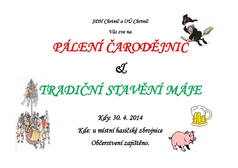 Zveme všechny z Chrtníče, okolí i z daleka na májovou zábavu pod širým nebem, která se uskuteční v sobotu 26. května 2012 od 20.00 hodin na parketě za místní hospodou.