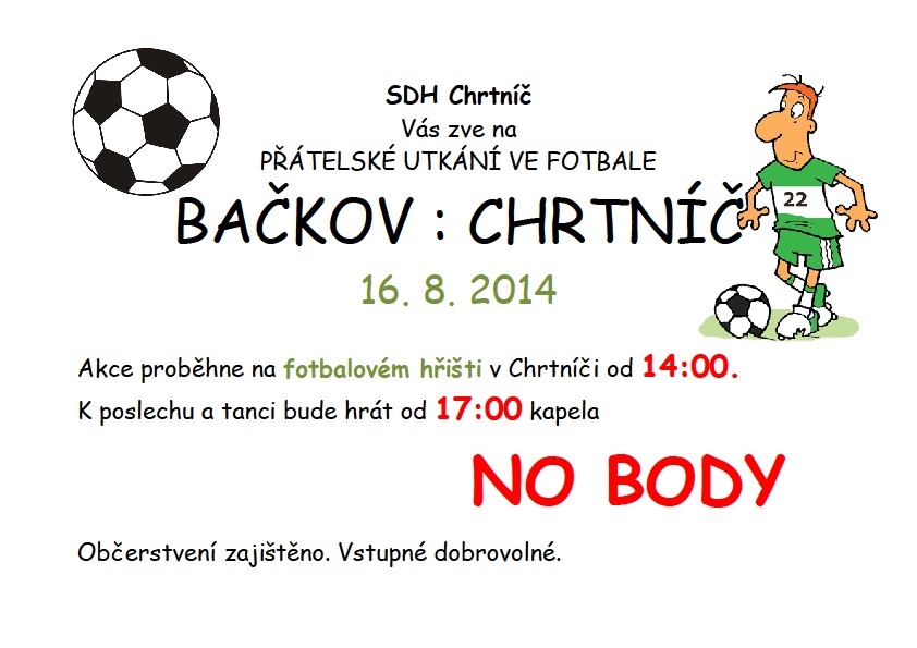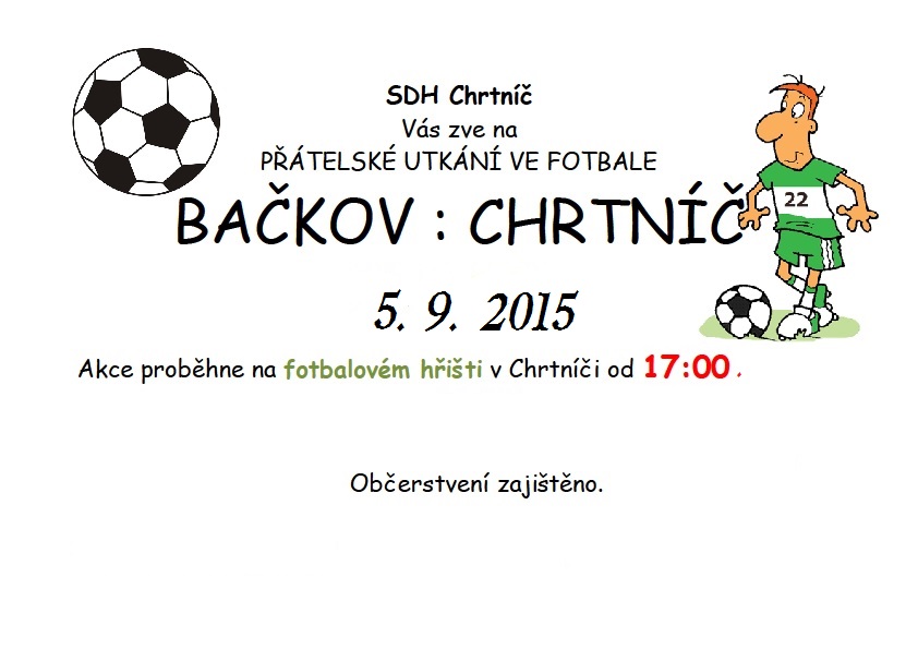 Dovoluji si Vás co nejsrdečněji pozvat na Okrskovou soutěž a zároveň oslavu 120. let od založení sboru SDH Chrtníč. Budeme potěšeni, když k nám zavítáte v co největším počtu. V dopoledních hodinách od 10:00 hod bude probíhat námětové cvičení tzv. předávka vody od nádrže na Okrouhlík a následně od 13 hod. soutěž na hřišti.